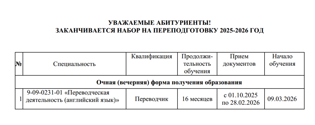 Набор на переподготовку 2025-2026 год